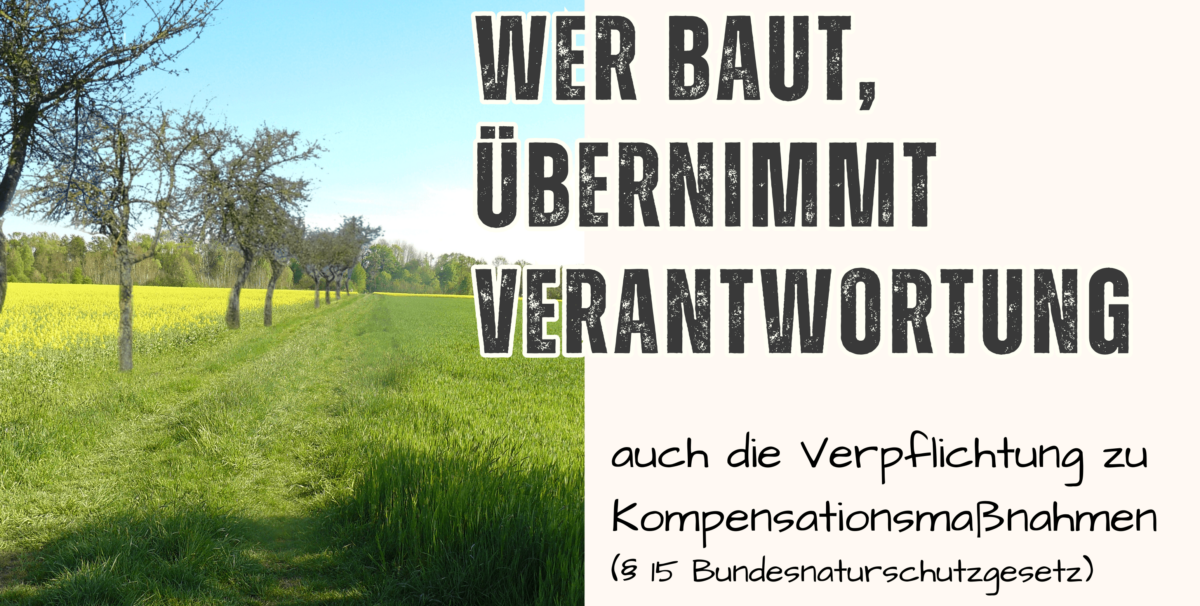 Die Verpflichtung nachteilige Eingriffe in Natur und Landschaft zu kompensieren, indem man andere Flächen im Sinne des Arten- und Umweltschutz ökologisch aufwertet, ist im Bundesnaturschutzgesetz und im Baugesetzbuch klar geregelt (§ 15 Abs. 2 Satz 1 BNatSchG, § 135a BauGB).